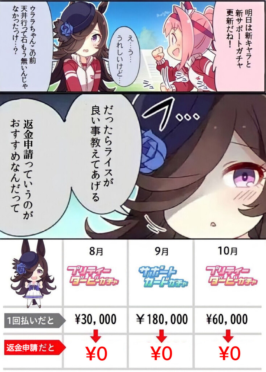 久々にリボライス見たなと思ったら返金ライスに進化してて草。これ最終的に返金も通らなくなってBANだけされる危険な奴や……。