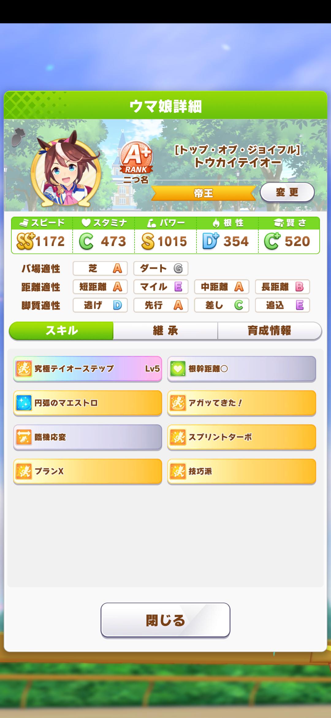 テイオーは因子で長距離差しにして使ってるわ