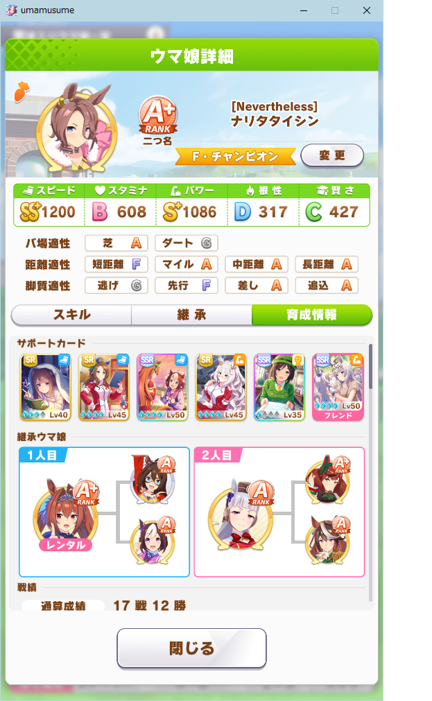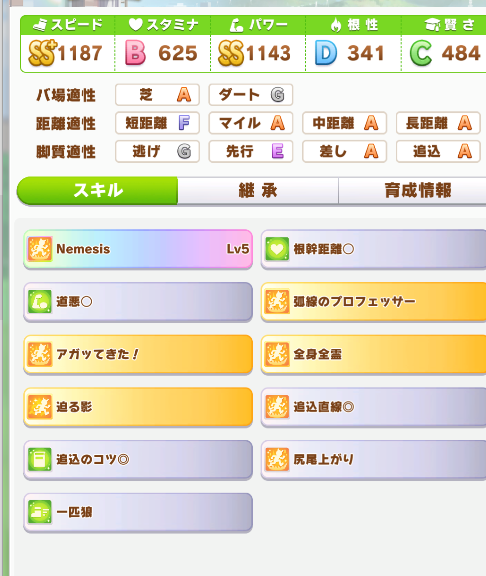 ゴルシの固有もついてるからあとはマイルコーナーとか尻尾上がりが必要なんじゃない