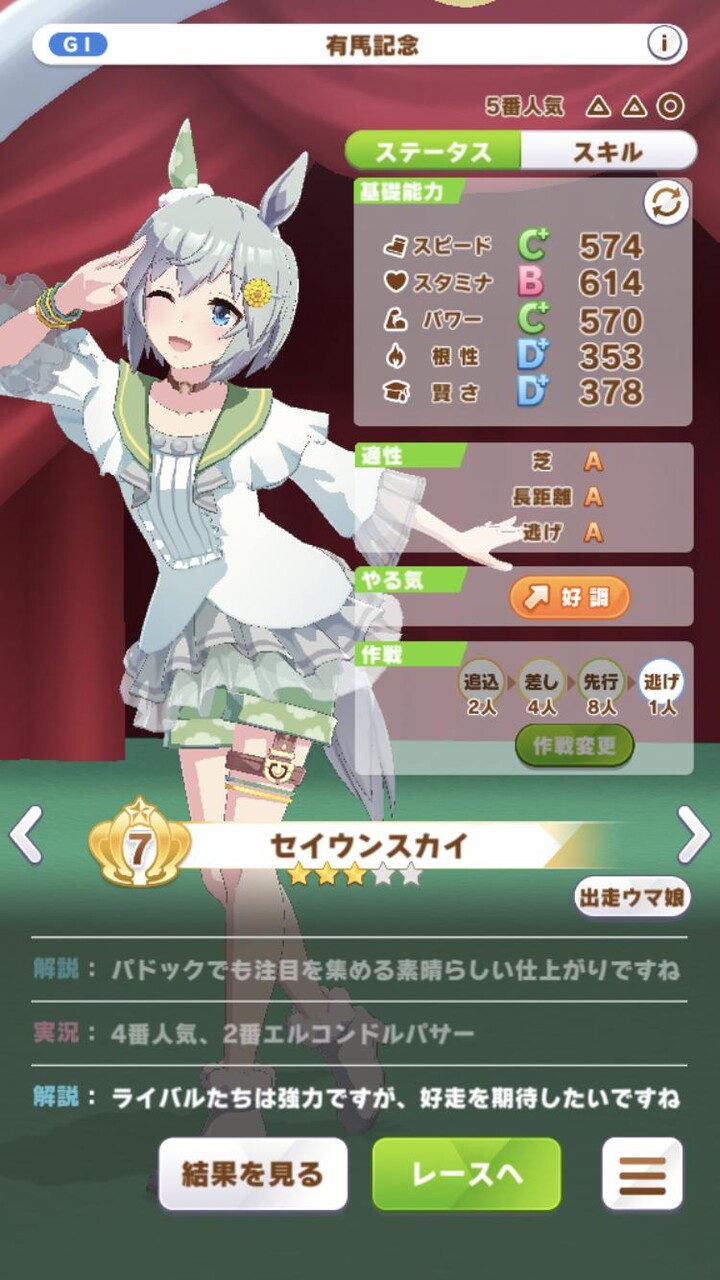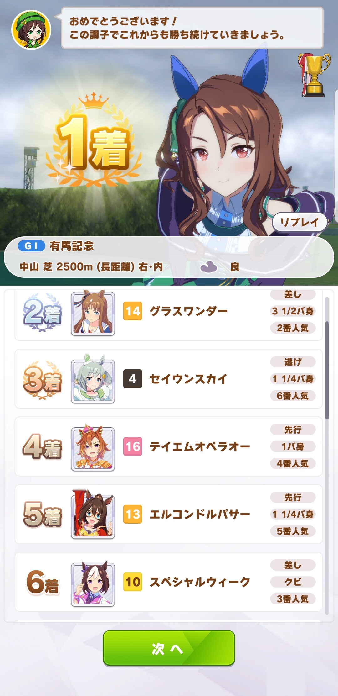 というか育成シナリオの一般通過オペラオーってなんでか知らないですけど結構1位もぎ取ってきますよね。辞めて…。
