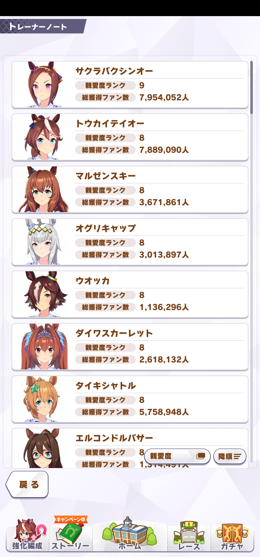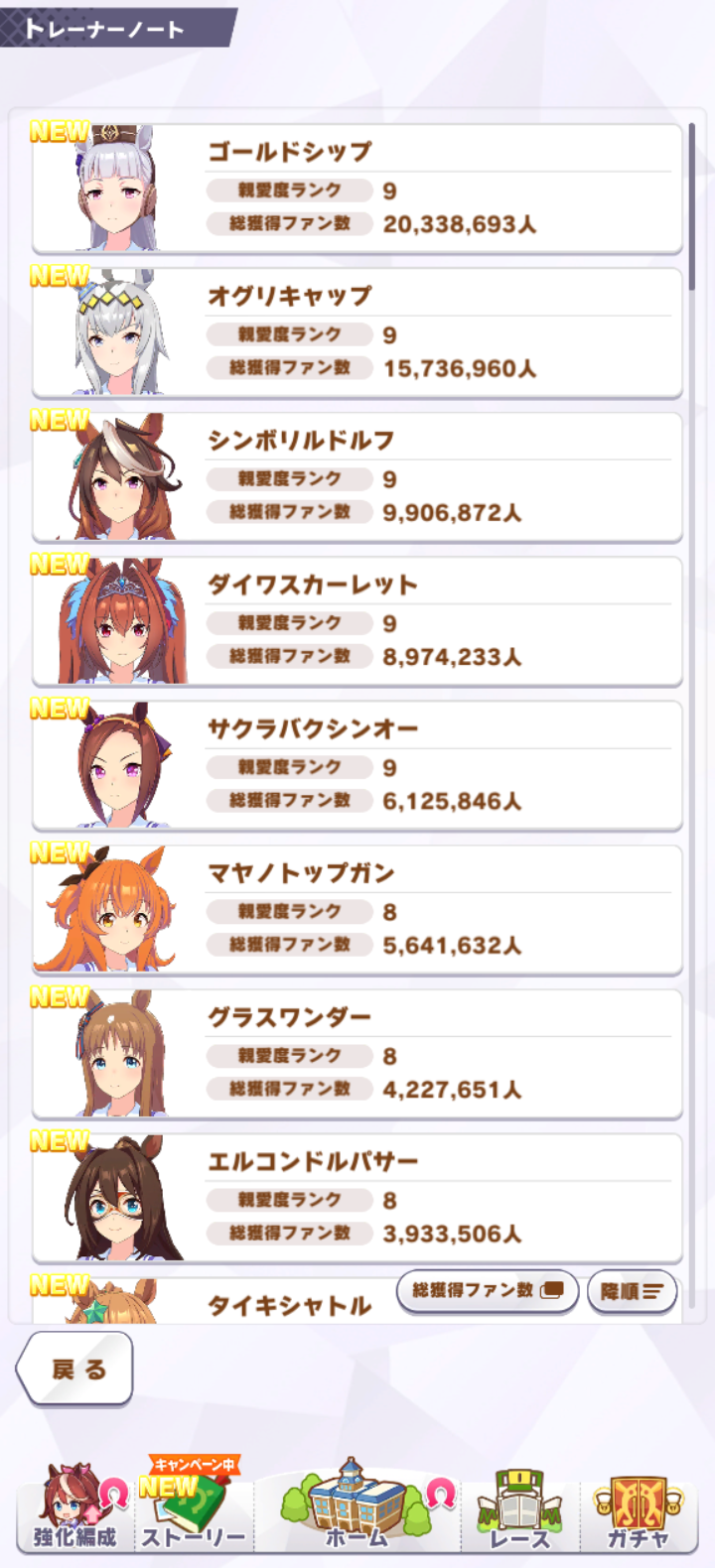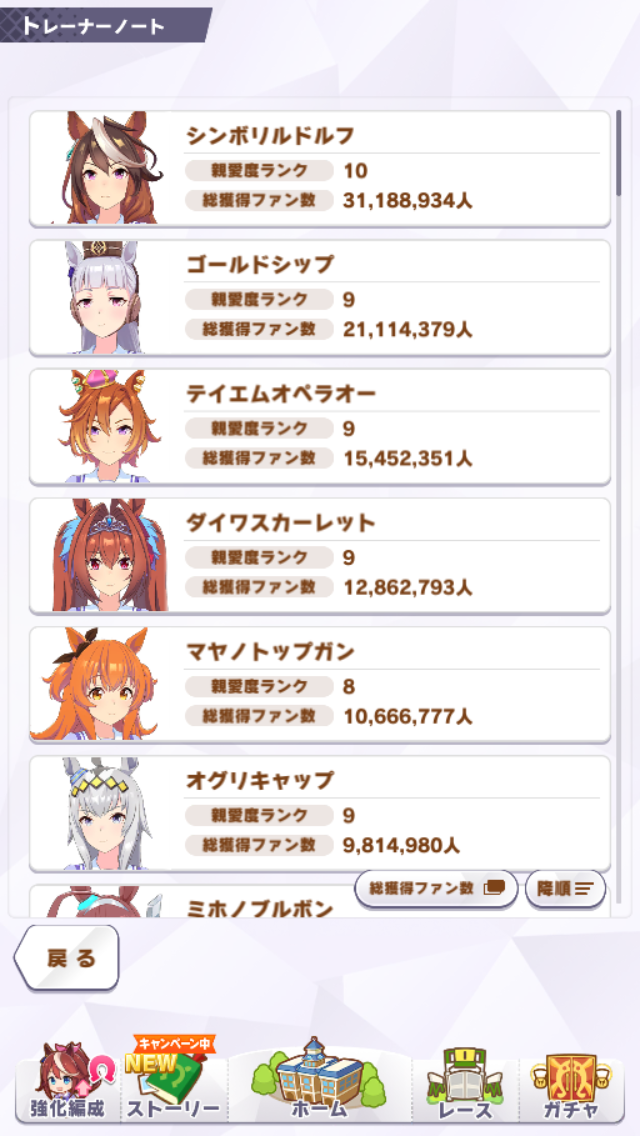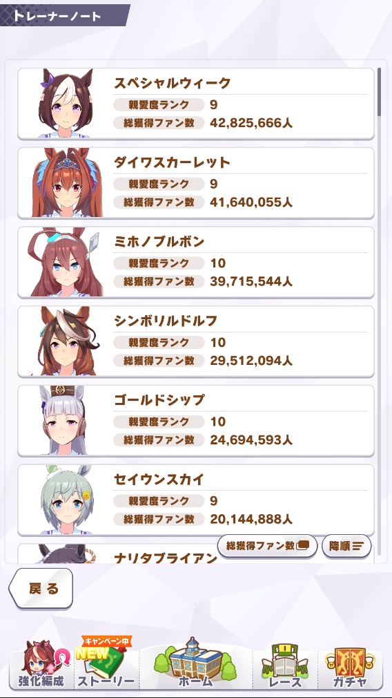 うちもルドルフ! って思ってたんですが今見たらゴルシが1位でした。