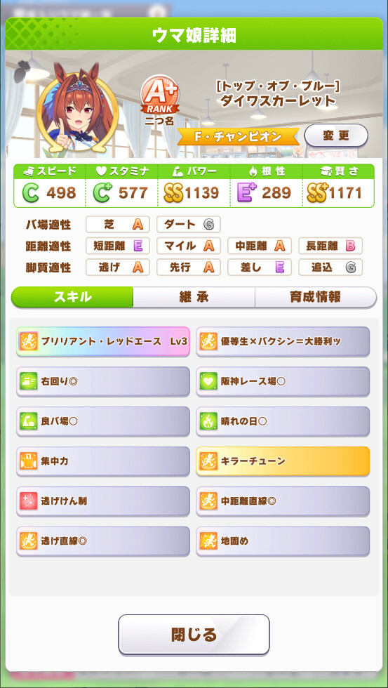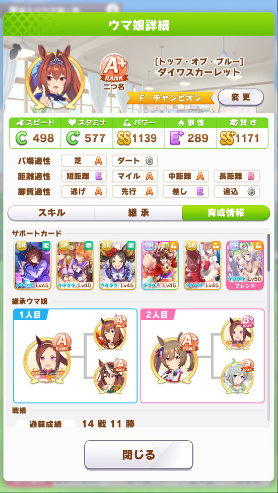 クリークは無凸1凸でも練習性能十分高いからスタ1で序盤スタ練習踏むの意識すれば宝塚くらい走り切れる