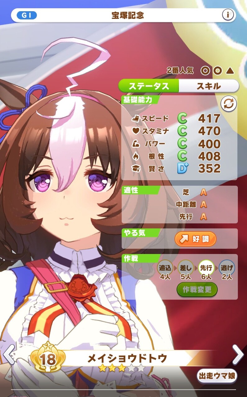 ほんと勝利ステアップとファン数さえ考慮しなくて良いのなら途中まで全レースオペラオー1位レベルでも良い気はする。