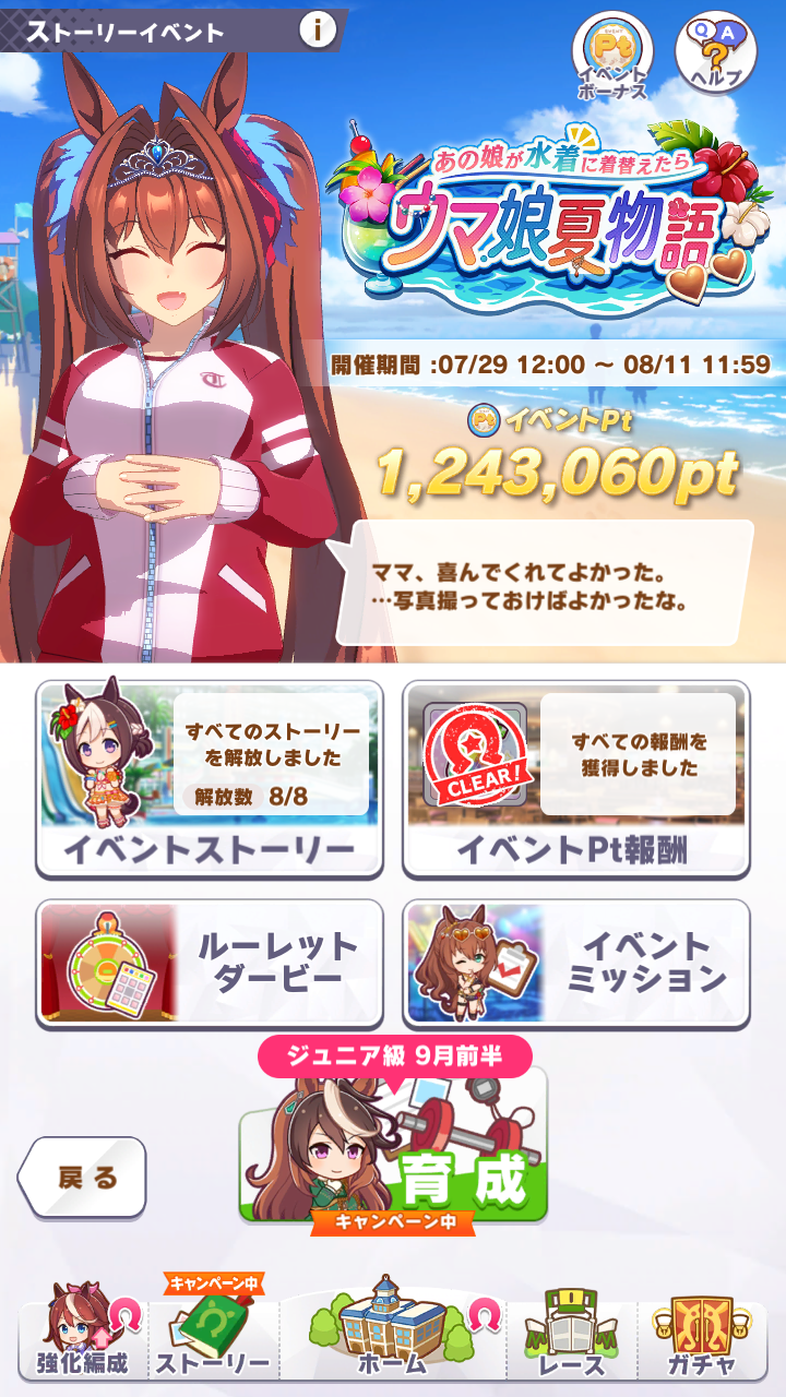 やる気有る時は一日3育成、忙しい日は0とか1とかだったのでなんとか終わりました。