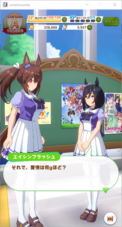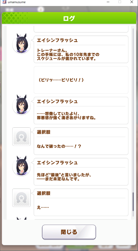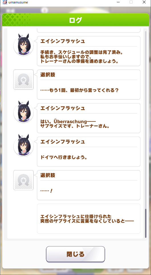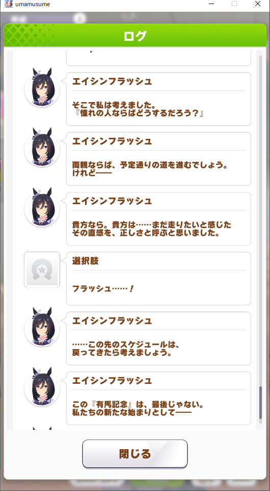 ※エイシンフラッシュの育成シナリオ、ホーム会話のネタバレあり※