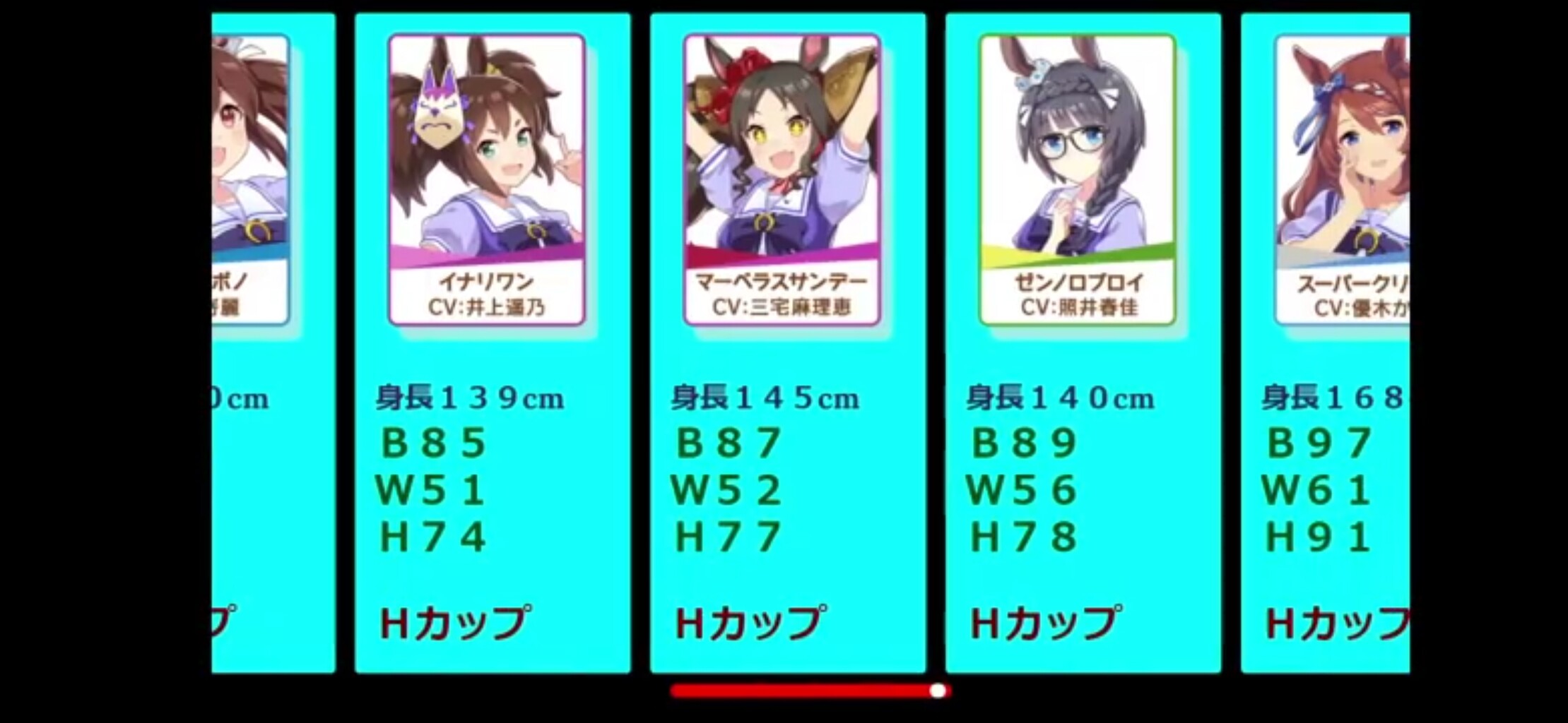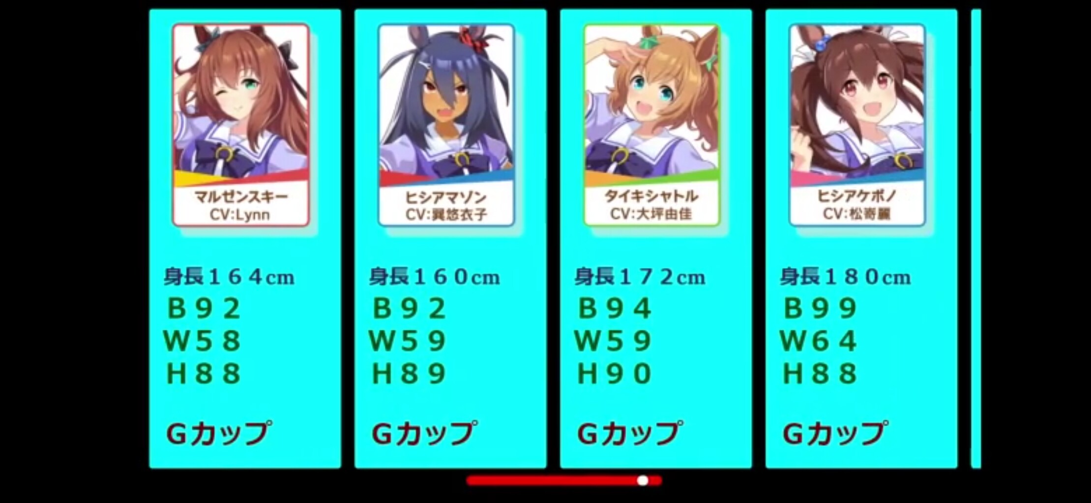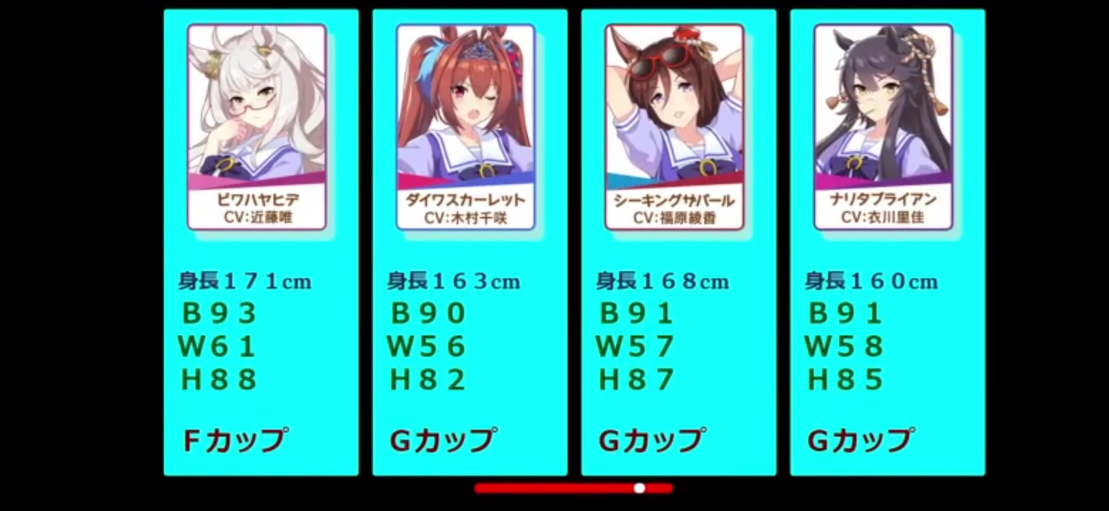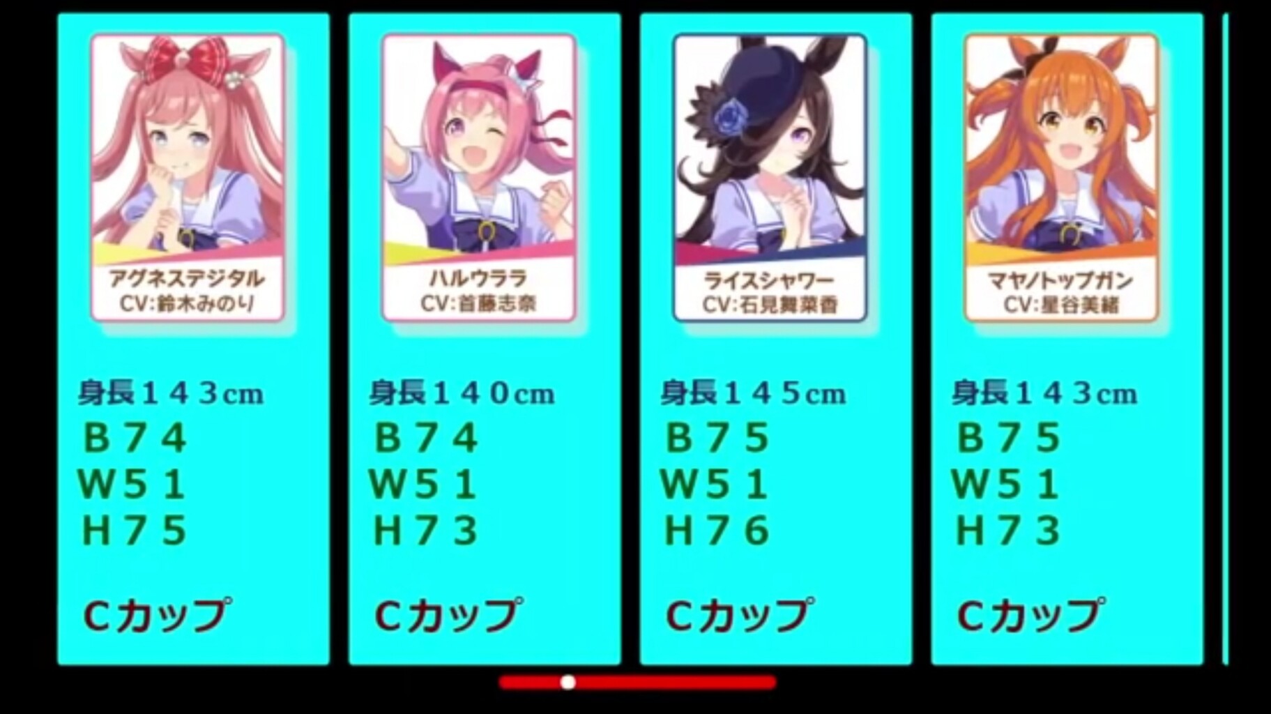 さすがに現実Cが膨らみが膨らみが分かる程度なのは小さく見積もり過ぎな気はしますが、ウマに限らず二次元の数値は見た目よりキャラクターイメージで設定されてる印象あります。