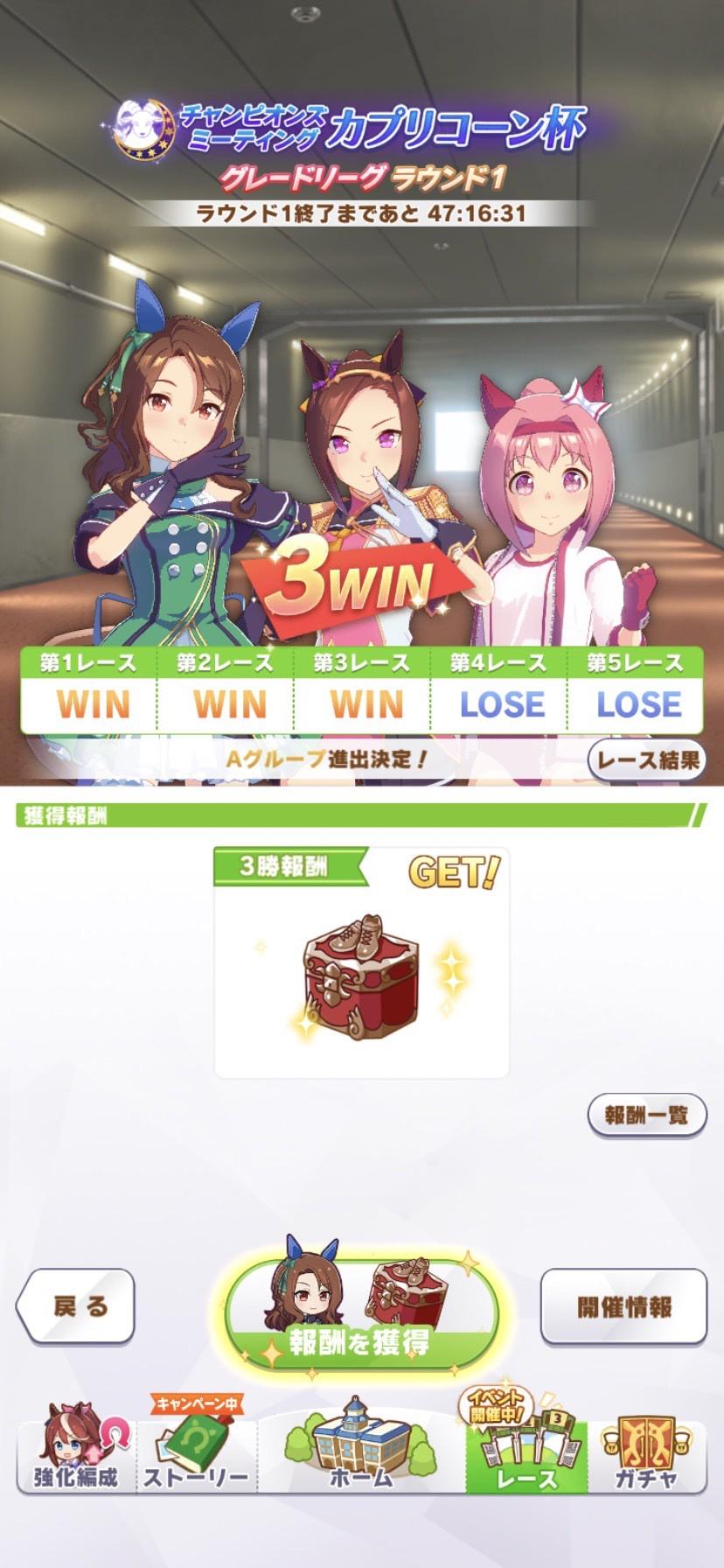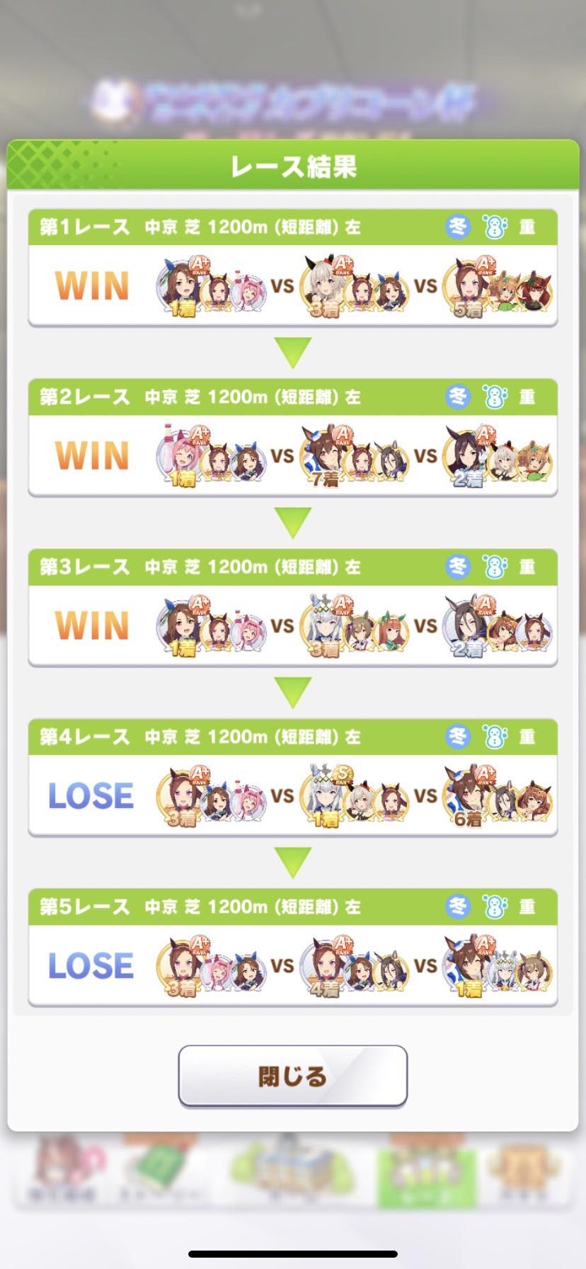 ちゃんとウララとキングで勝って予選突破してるのは素晴らしい。キングには限らないですが内側が団子になりやすいので外から上がってくるのが見えると「あっ」ってなる。