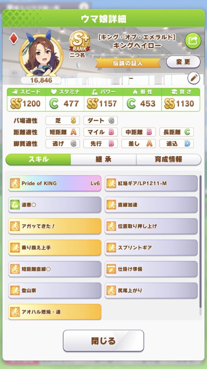 一番短距離の評価点もステも高いキング出してもぽんこつだったのに