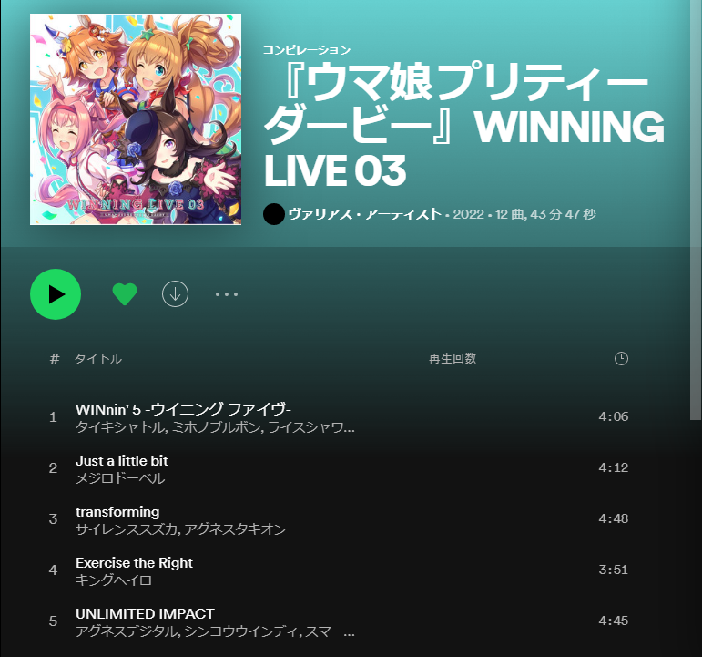 うまぴょい聞くの年始以来だけどやっぱいい曲だわ