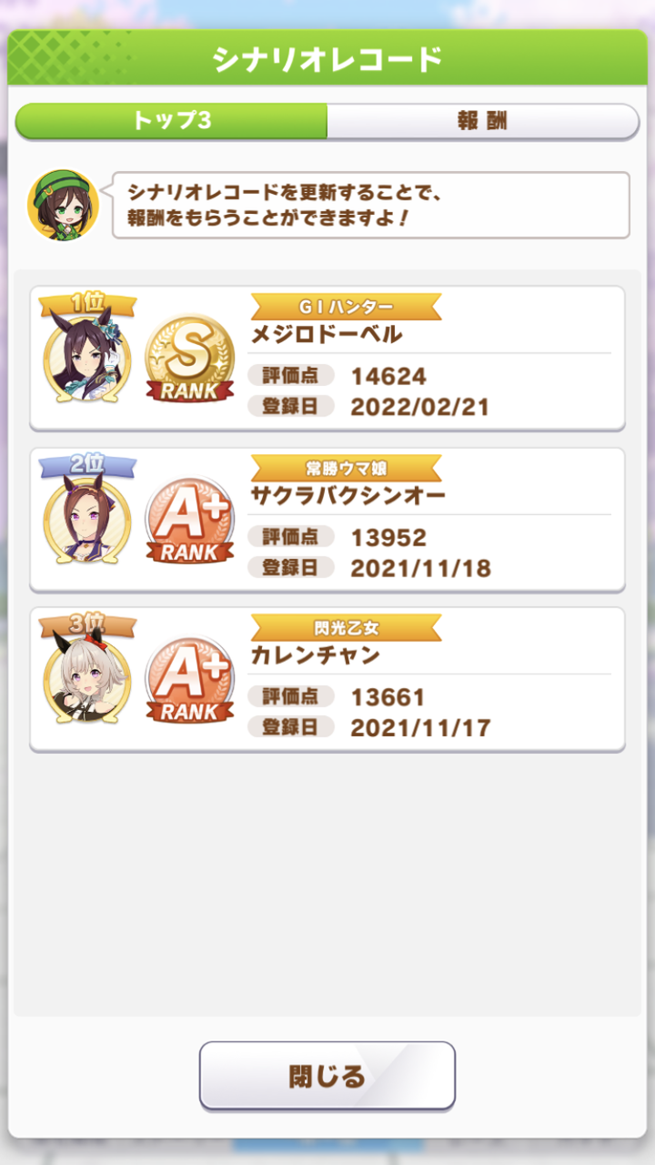 5月とか育成ウマ娘も引けてなかったのでA作るのにも苦労していた思い出。
