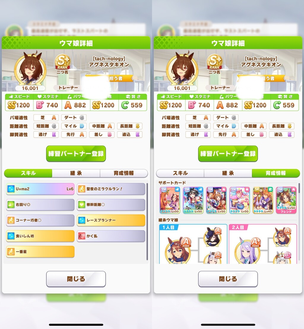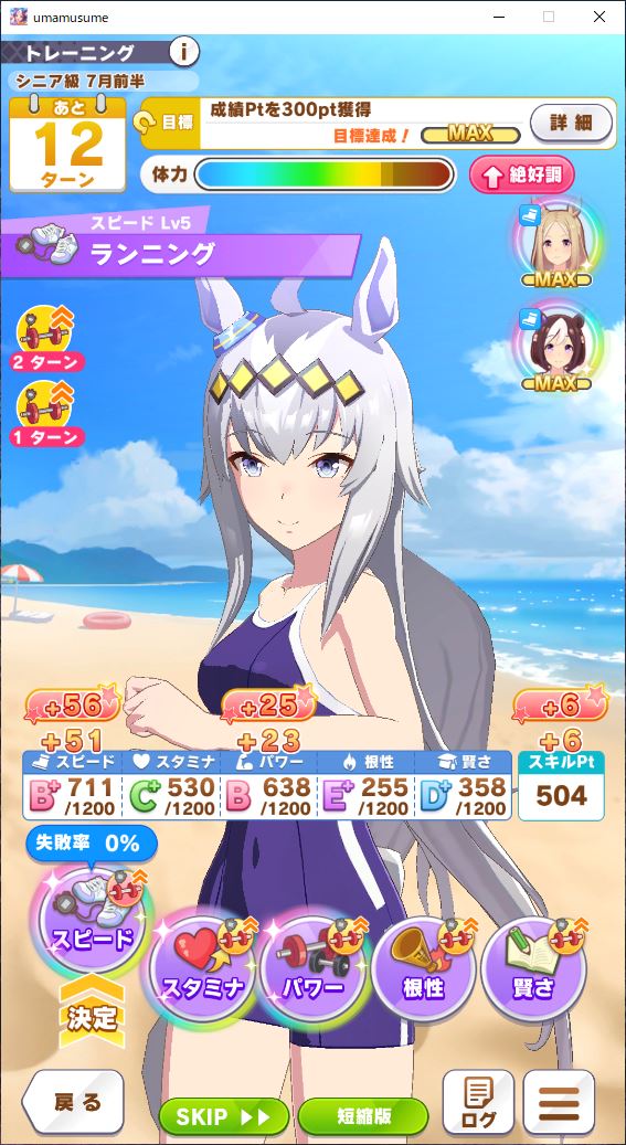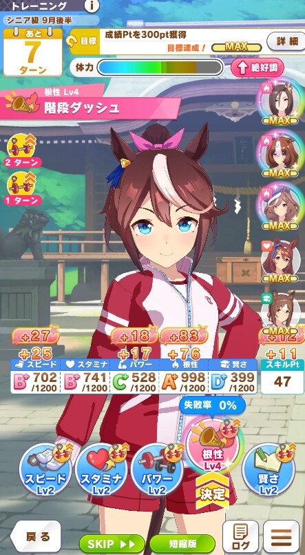 最後のトレがもう少し根性に集まってればスタミナ以外カンストいけたなー