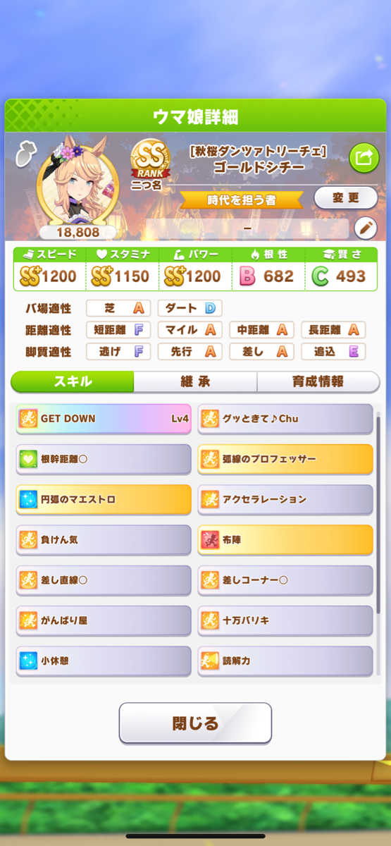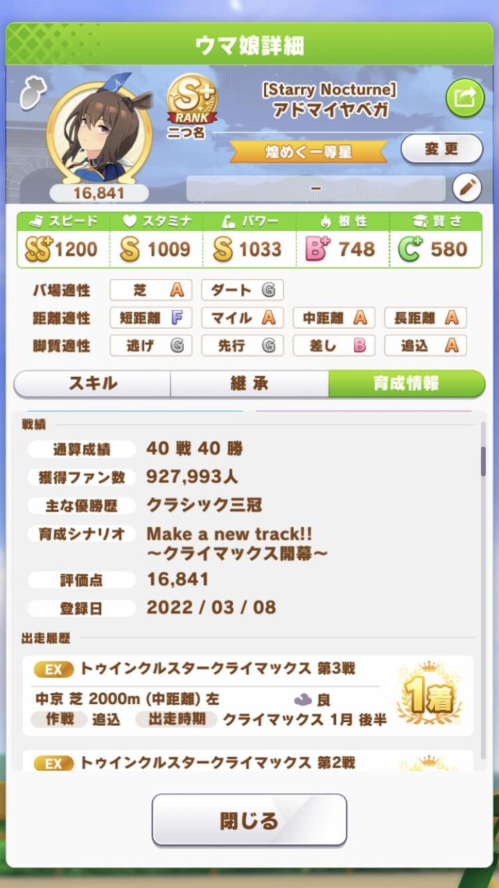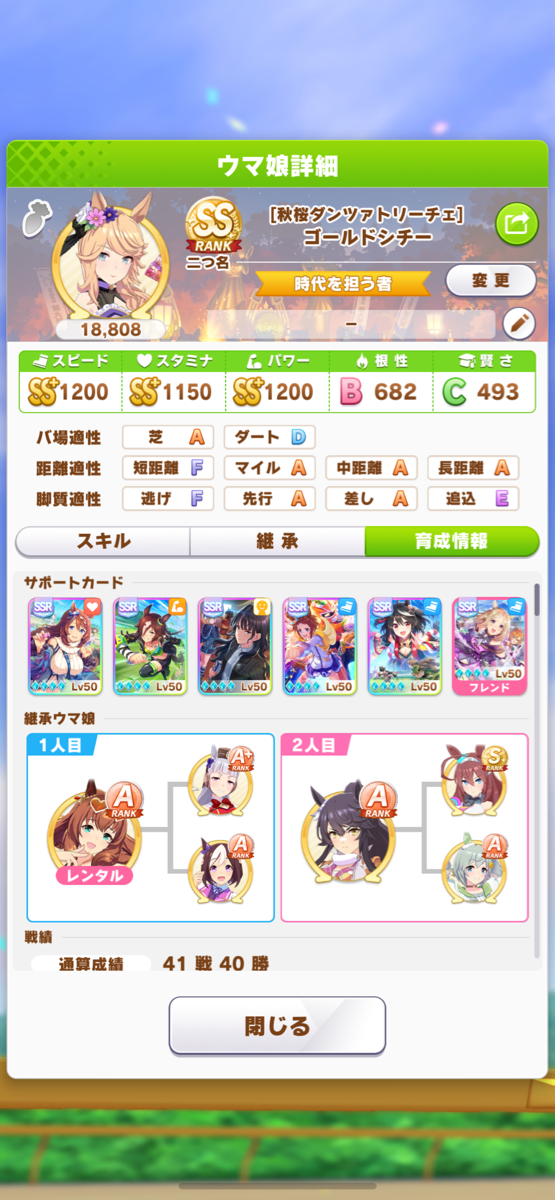 シニアでほとんどレースに出ないって書いてたけどダメだわシニアもある程度レース漬けにしないとポイントもステもスキルも足りない