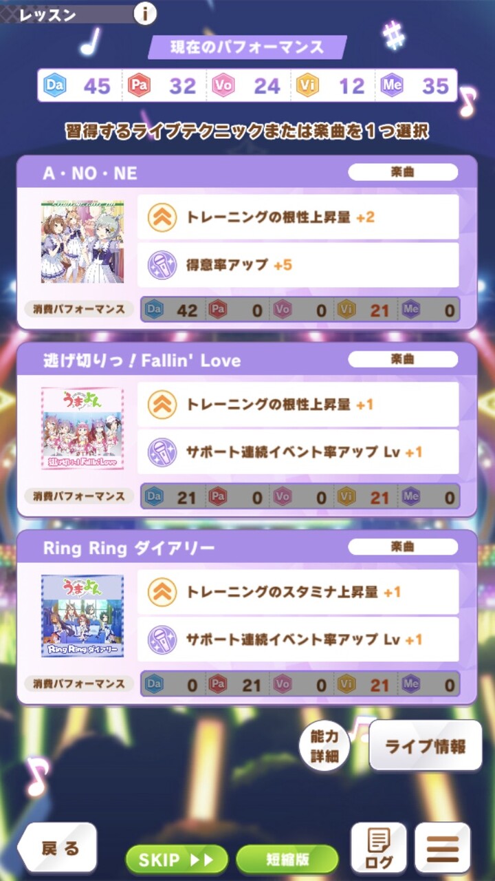 結局、取りたい曲のパフォ残しつつ体力回復も出たら拾いたいから回数やって感覚掴むしかない