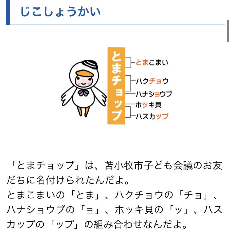 たぶん「チョーっプププ!苫小牧のマスコットだとまチョップ!」みたいな喋り方。
