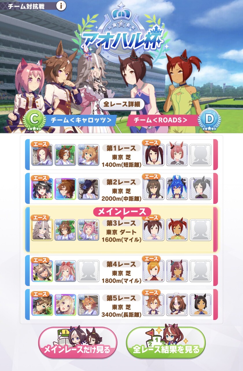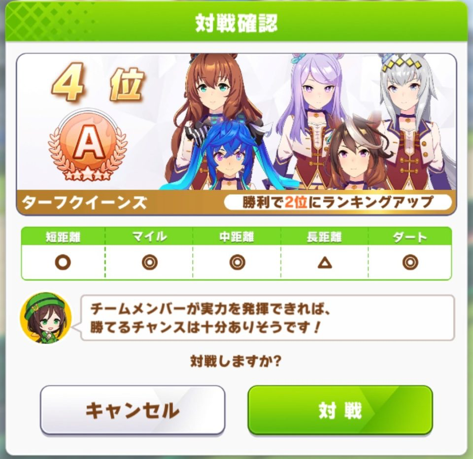 追加のダート組のサポカがまだないせいでファル子引き抜かれるせいでなかなか完成したメンツが見られないことがある