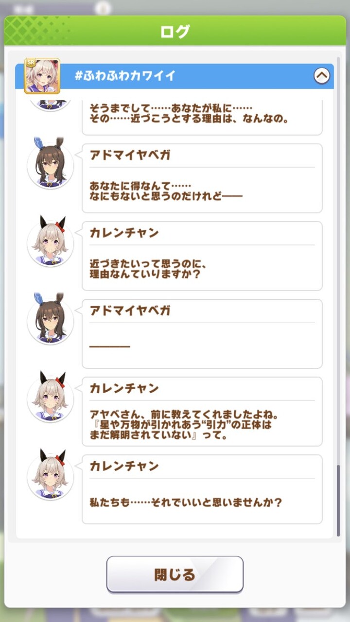 シナリオが凄く良かったアヤベさんが貰ってきたものに気づいてナリタトップロードに返したりカレンチャンはすげぇアシストしてくれるしドトウも勇気を出して戦ってくれたしオペラオーはお前どこまで気づいてて分かってやってるんだよって怖くなった