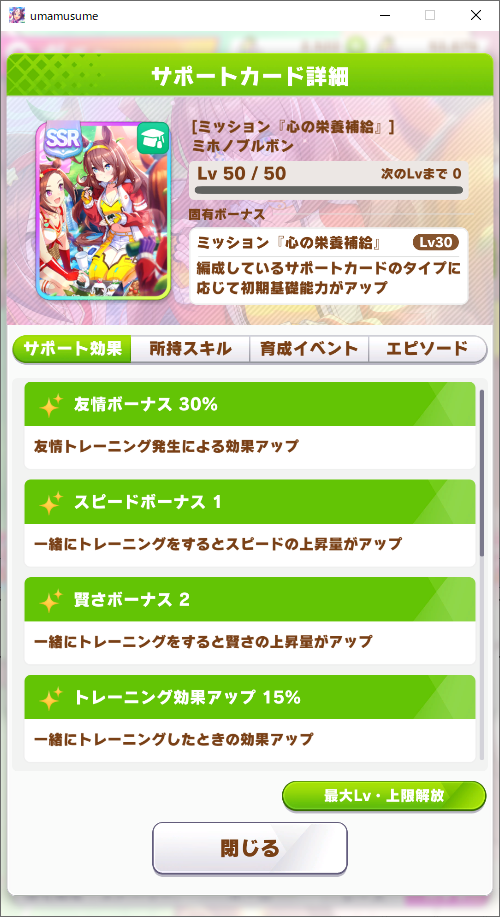 ブルボンはレースボーナスに目を瞑ればトレーニング性能は高いよな