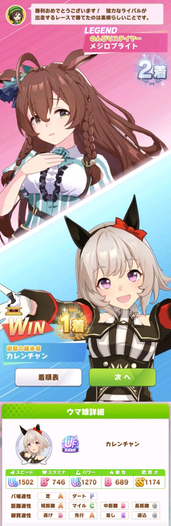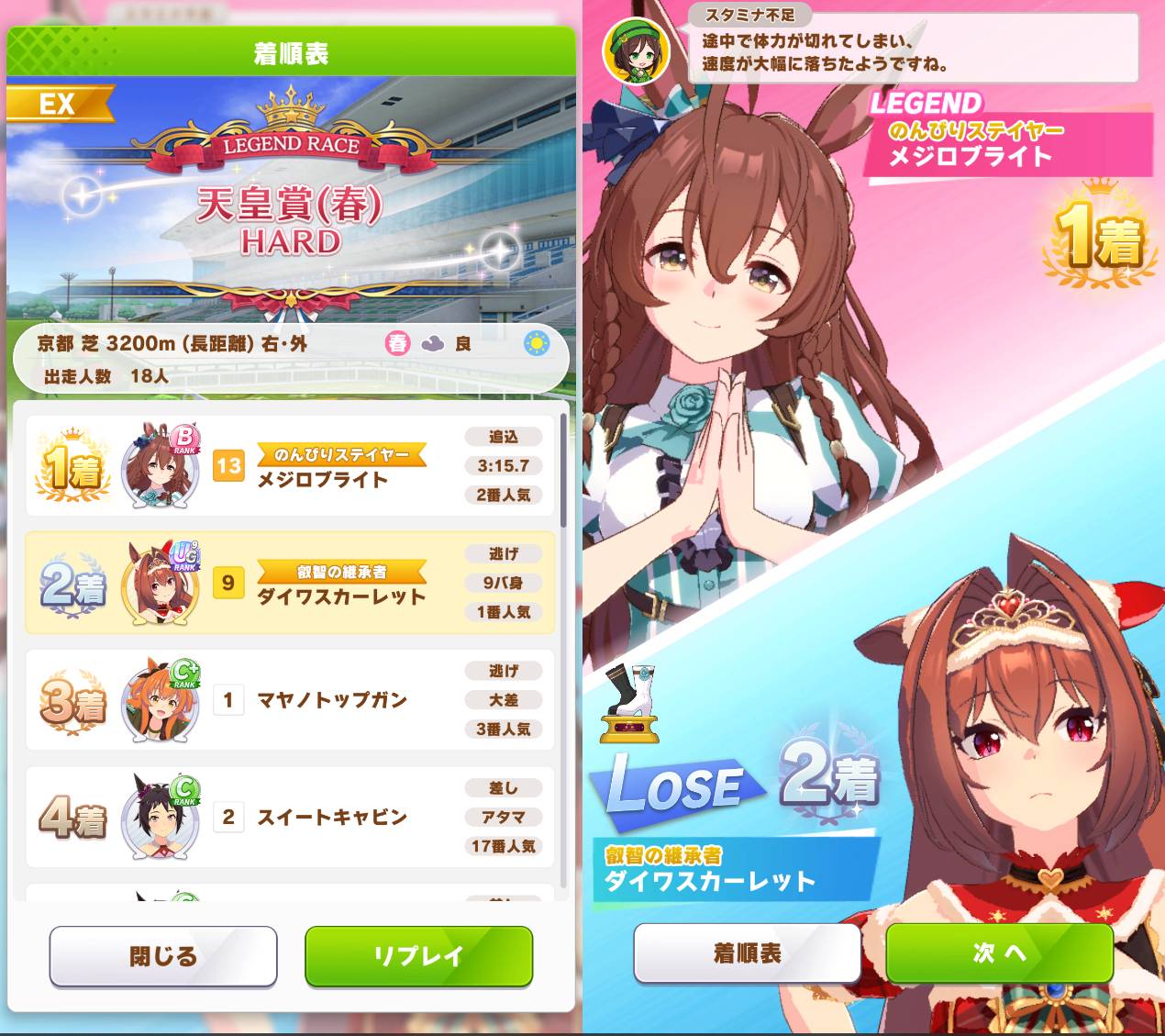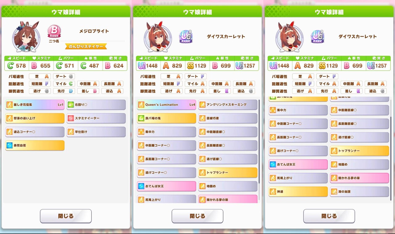 自分も大抵速度的には勝てるのでスタミナ重視して選んでますね。なおたまに負ける。