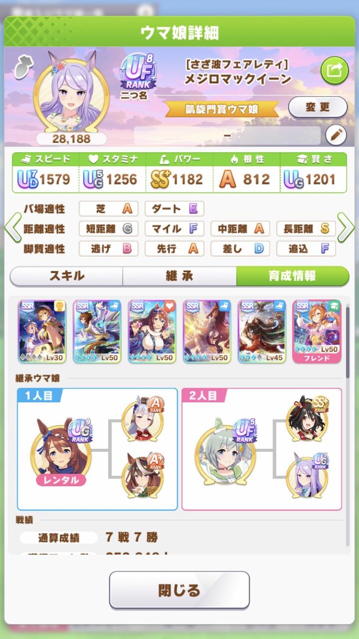 実際メイちゃん入れずに練習性能が高いSSR入れて上振れ狙うほうが強かったりするんやろか