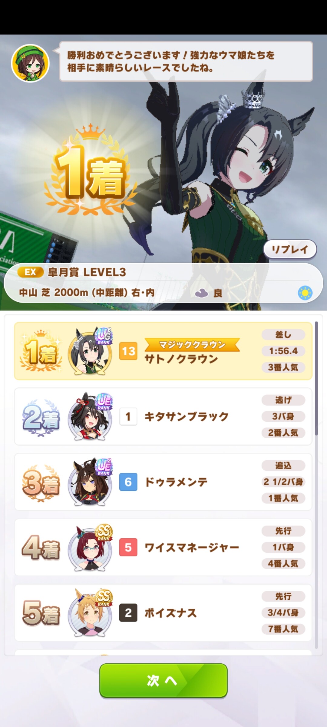 春天有馬はそういう想定のキャラ育ててたからストレートで勝てたけど皐月賞は何度か躓いたな…
