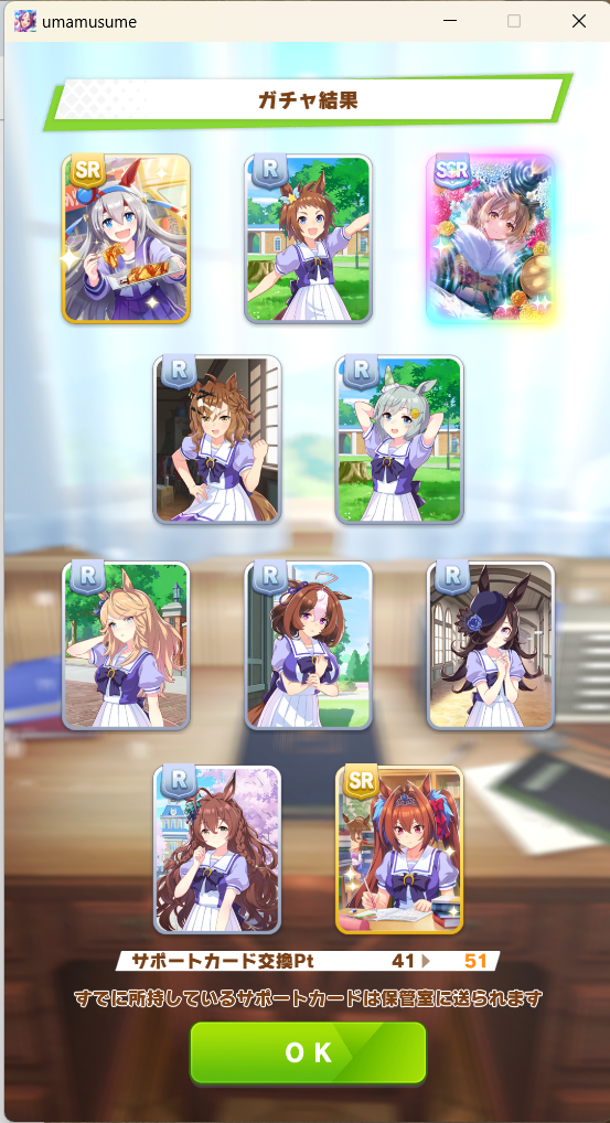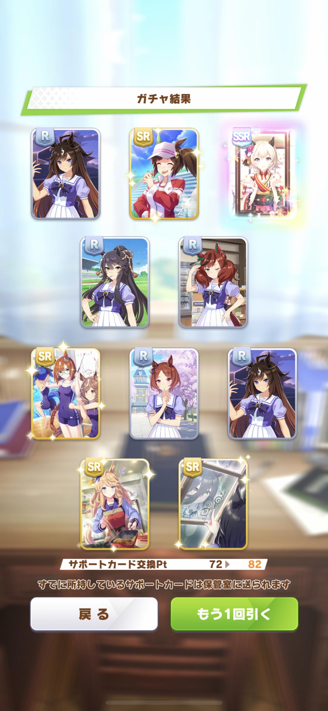 何を言ってるかは分からないと思いますが新年一発目のガチャはお空もお馬も虹色無しでした。