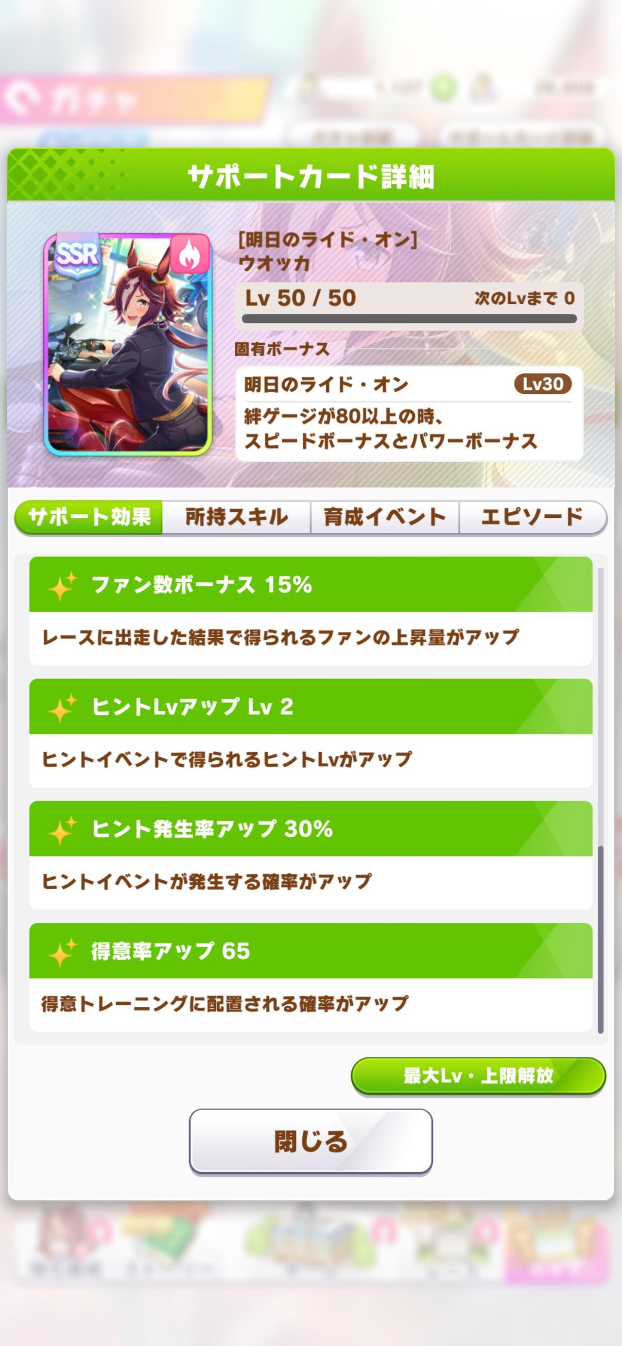 ・得意率アップは65#ウマ娘 #ウオッカ pic.twitter.com/MgxuaK6zLb