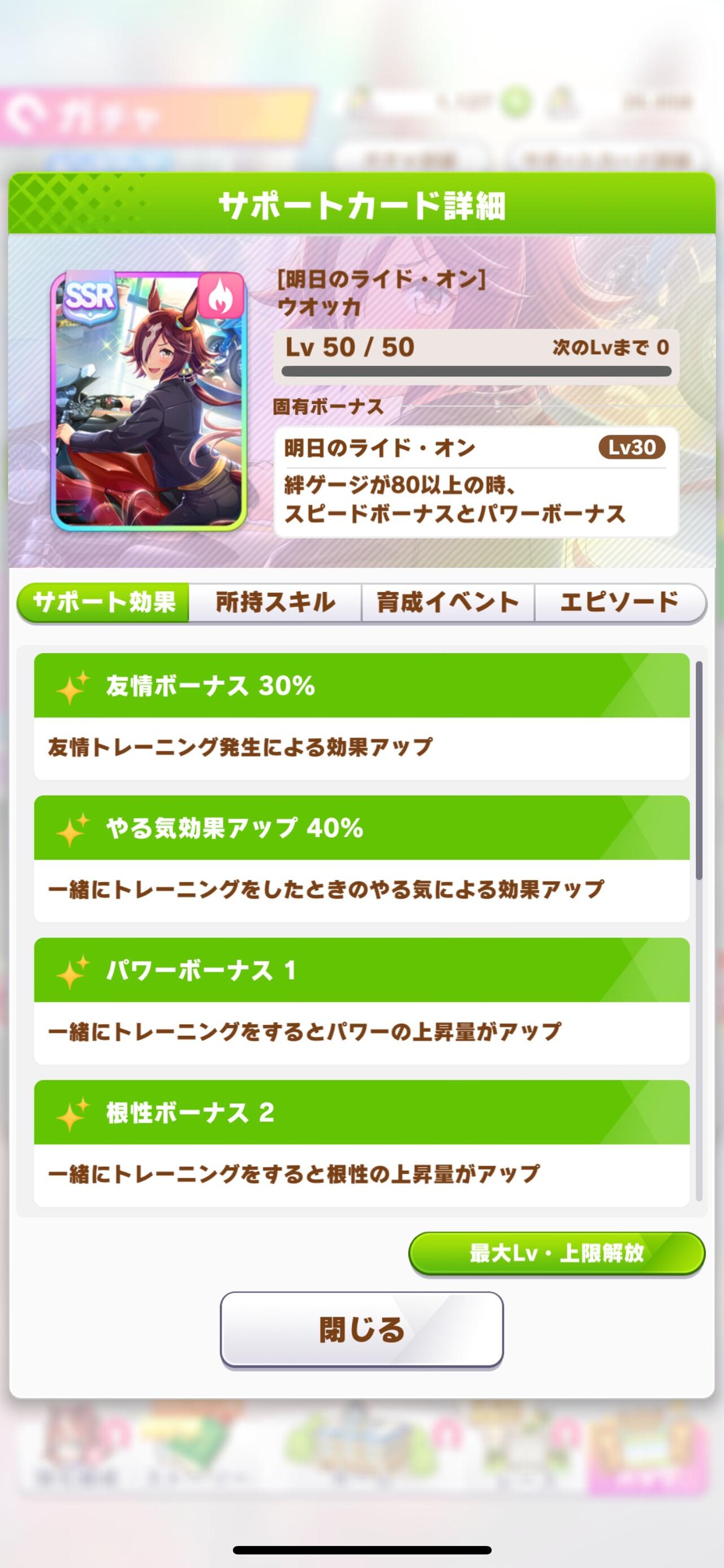 トレ効果ないけど友情30やる気40で固有込みでスピボ1パワボ2根性2?ってどうなん