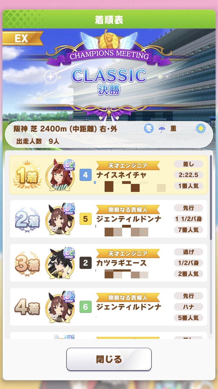 ネイチャでチャンミ勝てたの2年くらい前の短距離だけやで?
