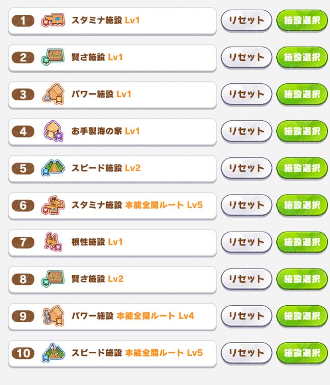 以降はスピだけ本能全開レベル5を目指して残りの施設をステの状態を見つつ本能全開にしてあげてください!