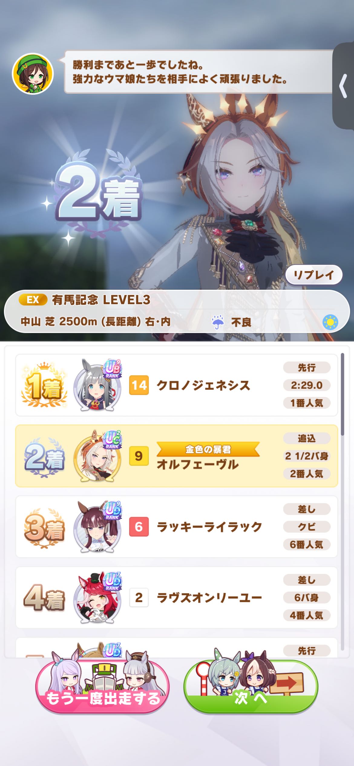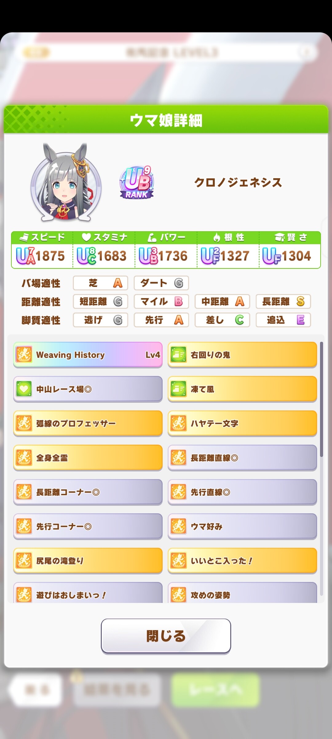 他は全部チムレの流用とかチャンミので行けたけどやっぱチムレとかでもつくらない中距離ダート(Lv3)が鬼門