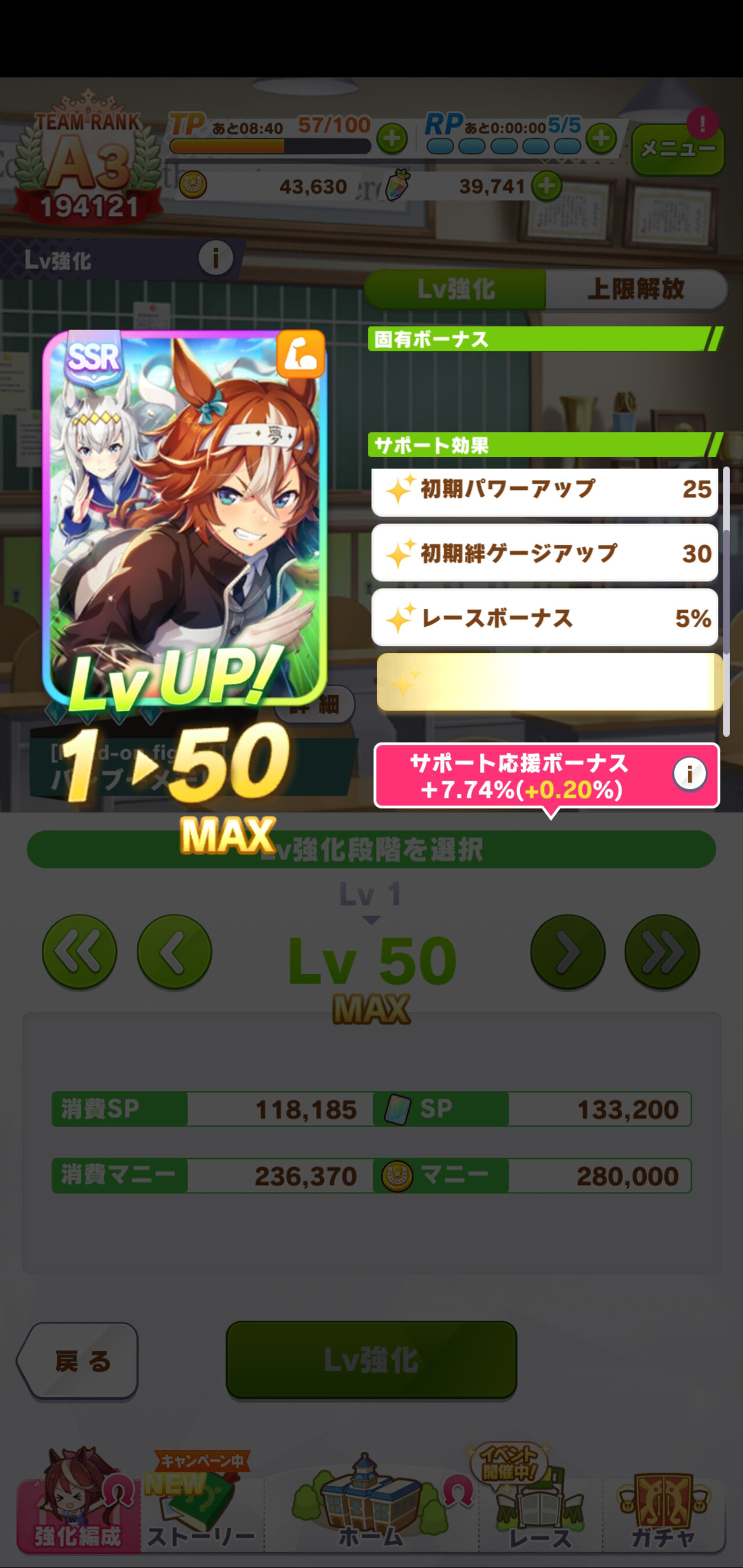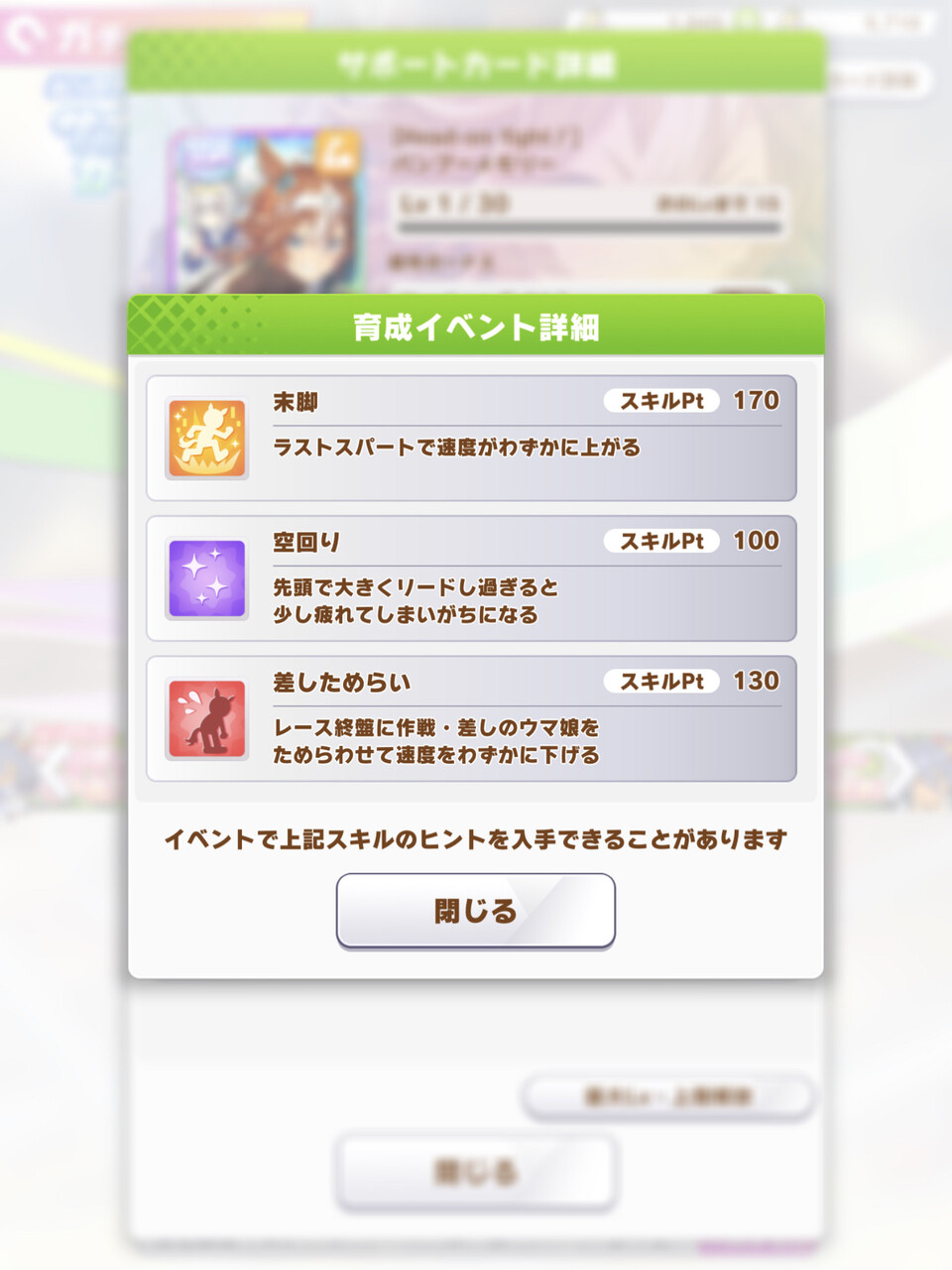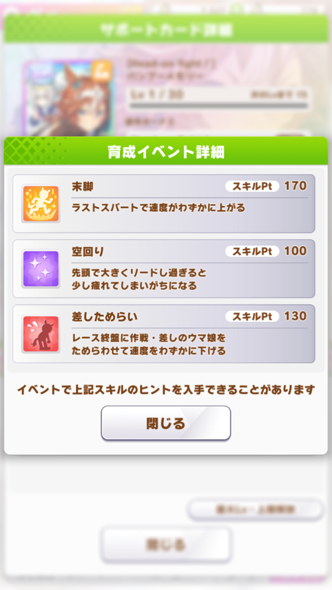SRドーベルやSSRウララはあまり上げる必要ない賢さや根性だから得意率0でも使い勝手がいいわけだから