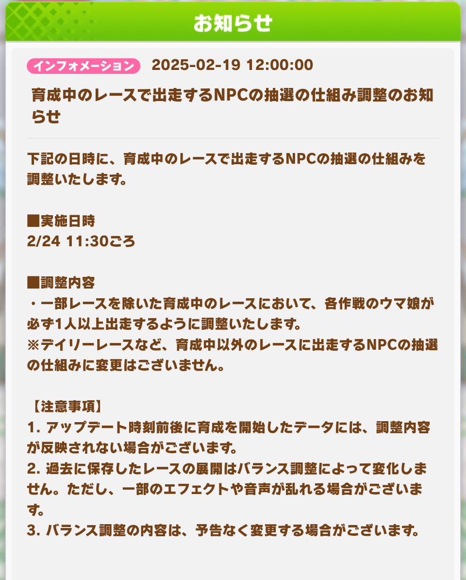【ウマ娘】メイクデビューの偏りが解消されるのか… 2025年02月20日 カテゴリ:雑談 【【ウマ娘】メイクデビューの偏りが解消されるのか…】の続きを読む タグ :#ウマ娘#ゲーム#まとめ#雑談#アップデート