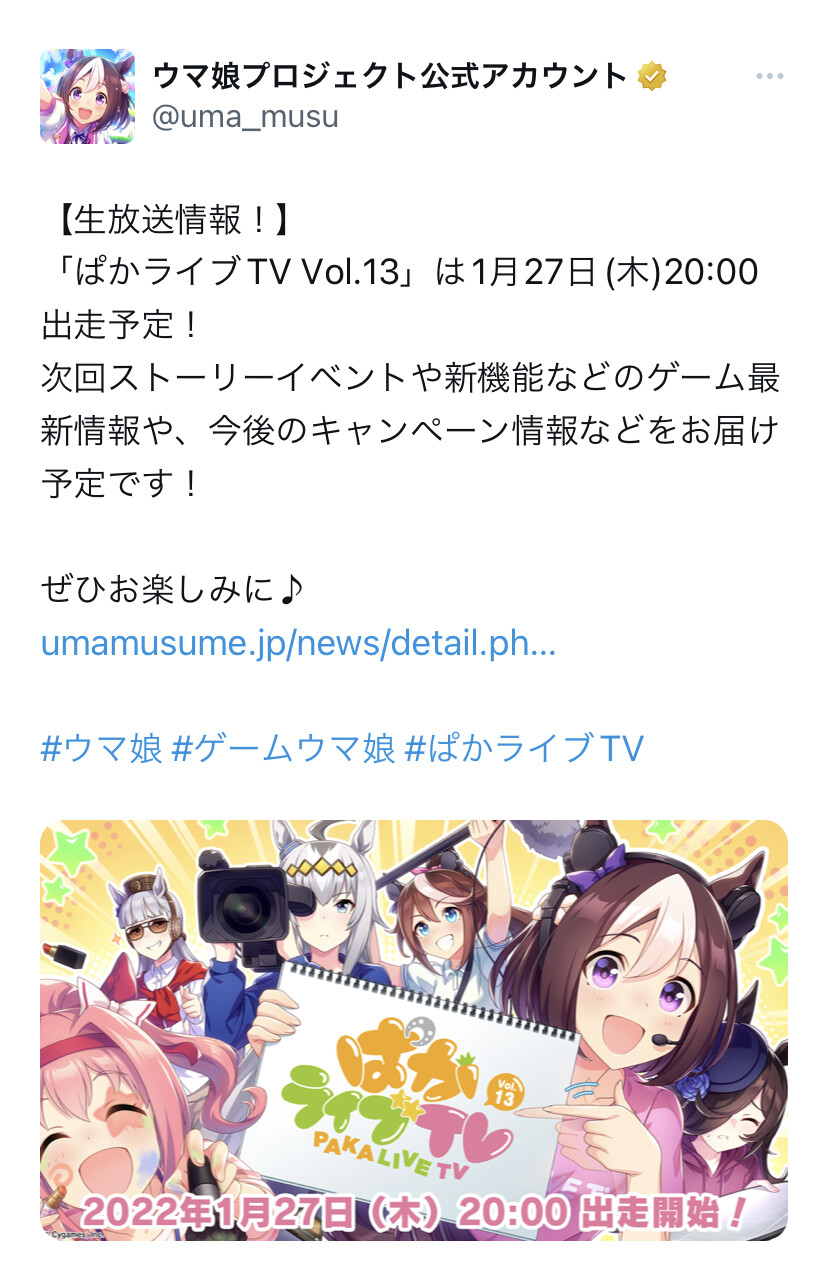 追加ウマ娘ある時って事前ツイートで告知あるんだっけ? 2023年06月25日 カテゴリ:キャラ雑談 【追加ウマ娘ある時って事前ツイートで告知あるんだっけ?】の続きを読む タグ :#ウマ娘#ゲーム#まとめ#雑談#キャラ