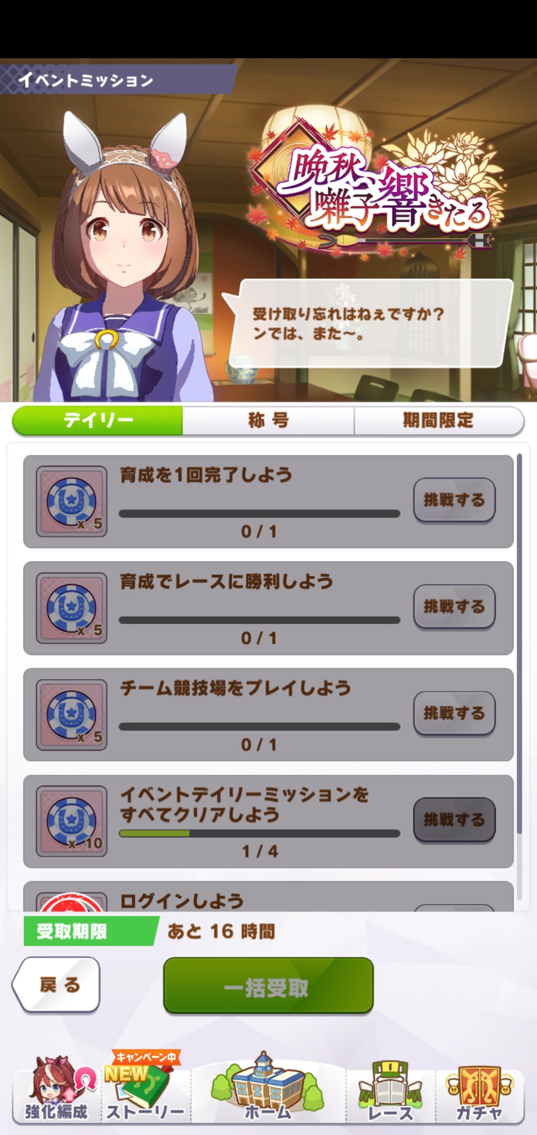 【ウマ娘】今回のイベントは無職の私でも完走不可能でした 2021年11月08日 カテゴリ:キャラ雑談 【【ウマ娘】今回のイベントは無職の私でも完走不可能でした】の続きを読む タグ :#雑談#ストーリーイベント