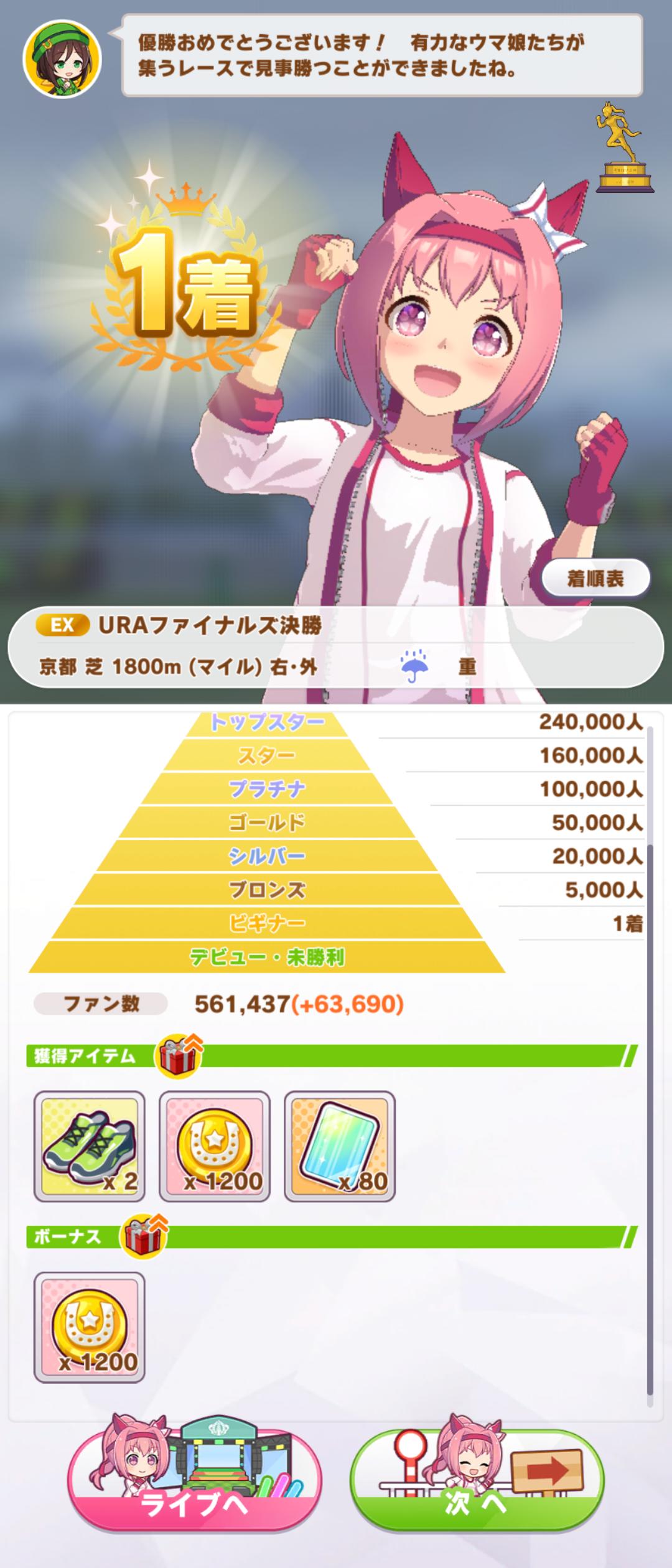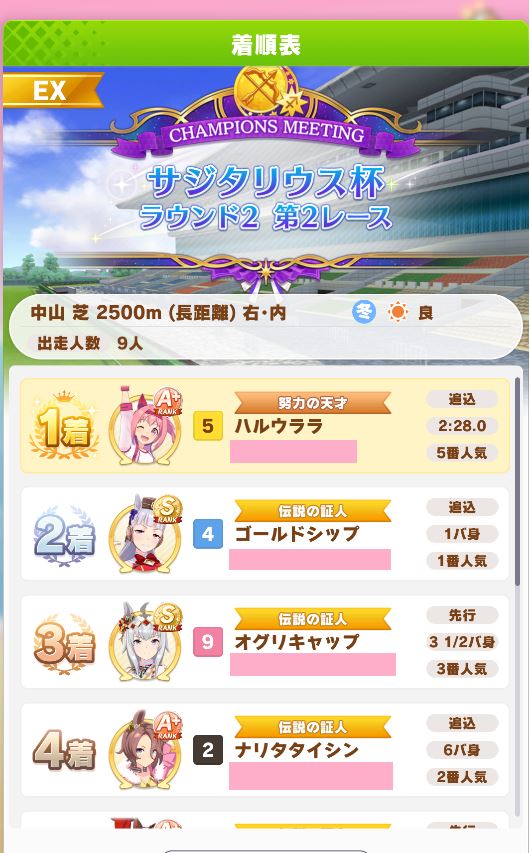 【ウマ娘】ハルウララちゃん無事ラウンド2でも1位を取りA決勝進出へ 2021年12月24日 カテゴリ:キャラ雑談 173: パカ娘速報 2021/12/24(金) 15:55:28.32 ID:FJUbPT6o0EVE予想してたとはいえ非常に厳しい戦いでしたが、ラウンド2・Aグループでもハルウララで勝利できました!!!何よりいたら今まで負け確だったクリオグリにも展開次第で勝てる可能性ができたというのは大きい! 【【ウマ娘】ハルウララちゃん無事ラウンド2でも1位を取りA決勝進出へ】の続きを読む タグ :#雑談#ハルウララ#サジタリウス杯